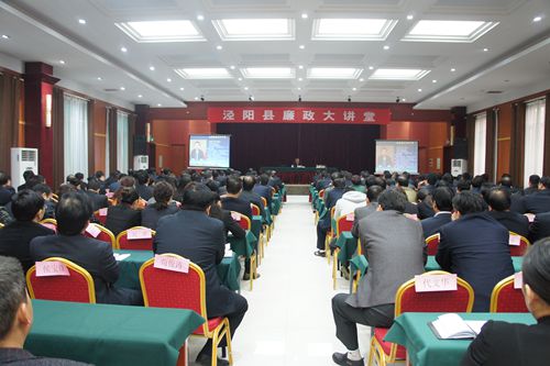 10月29日,由县纪委组织,在县宾馆礼堂举办廉政大讲堂,特邀省纪委常委高山作了关于党风廉政建设工作专题报告。全体县级领导,各镇党委书记、镇长、纪委书记,县纪委委员,县级各部门党委(党组)书记、主要负责人、纪委书记(纪检组长),县纪委机关全体干部260余人听取报告。